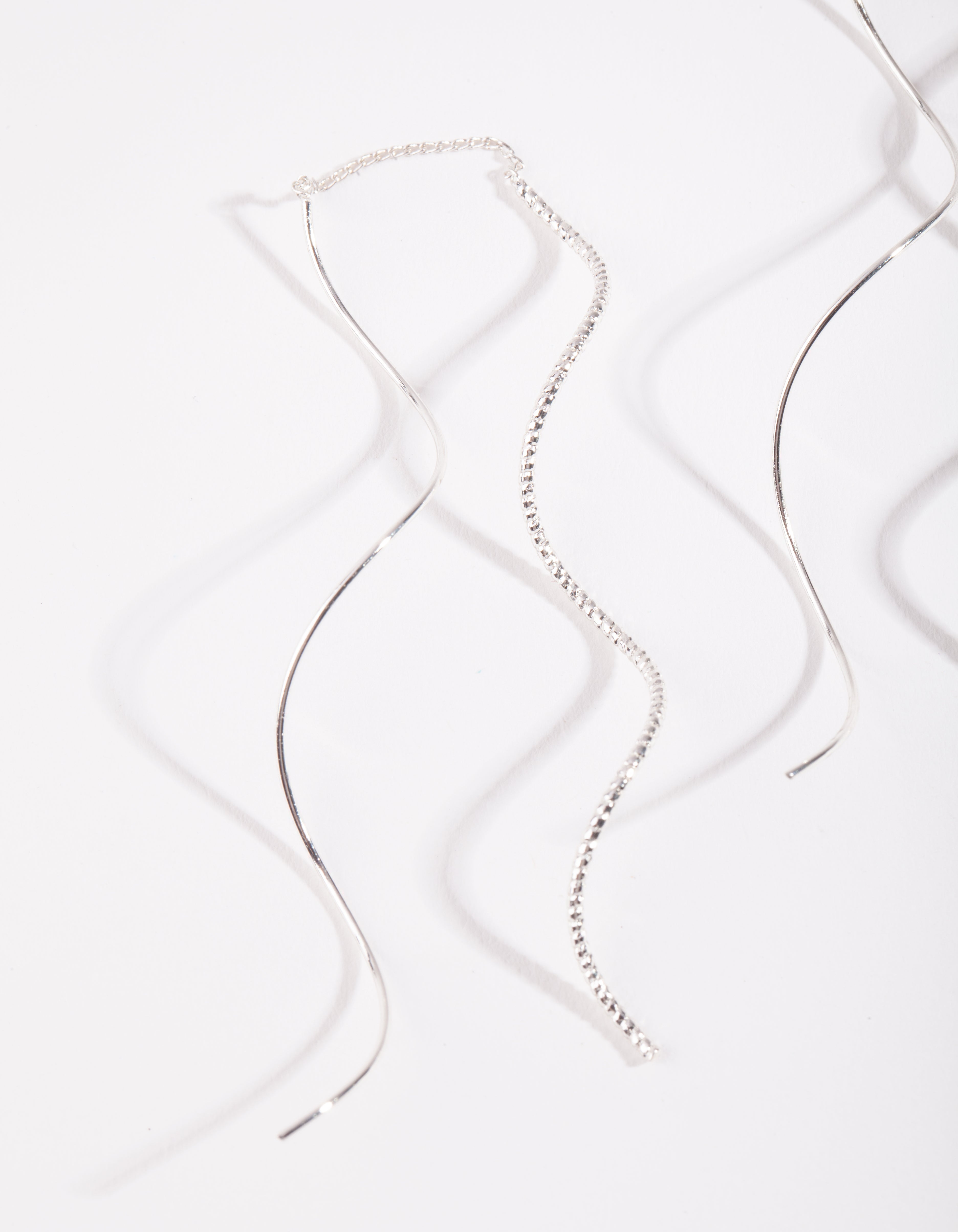 Silver Double Wave Thread Through Earrings