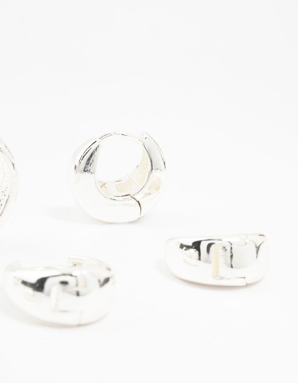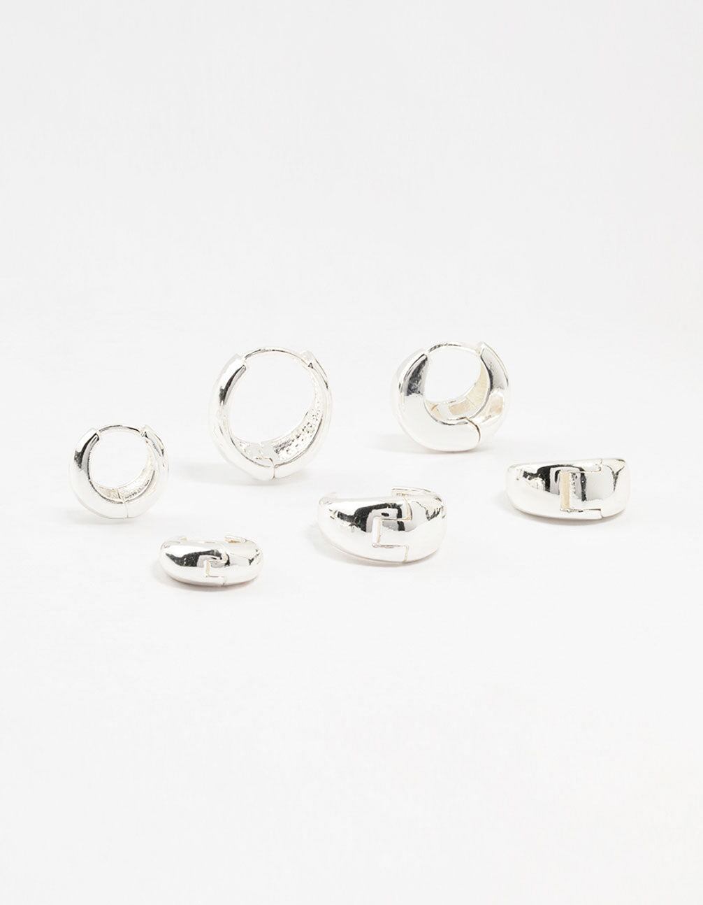 Silver Plated Brass Chunky Mixed Hoop Earrings 3-Pack