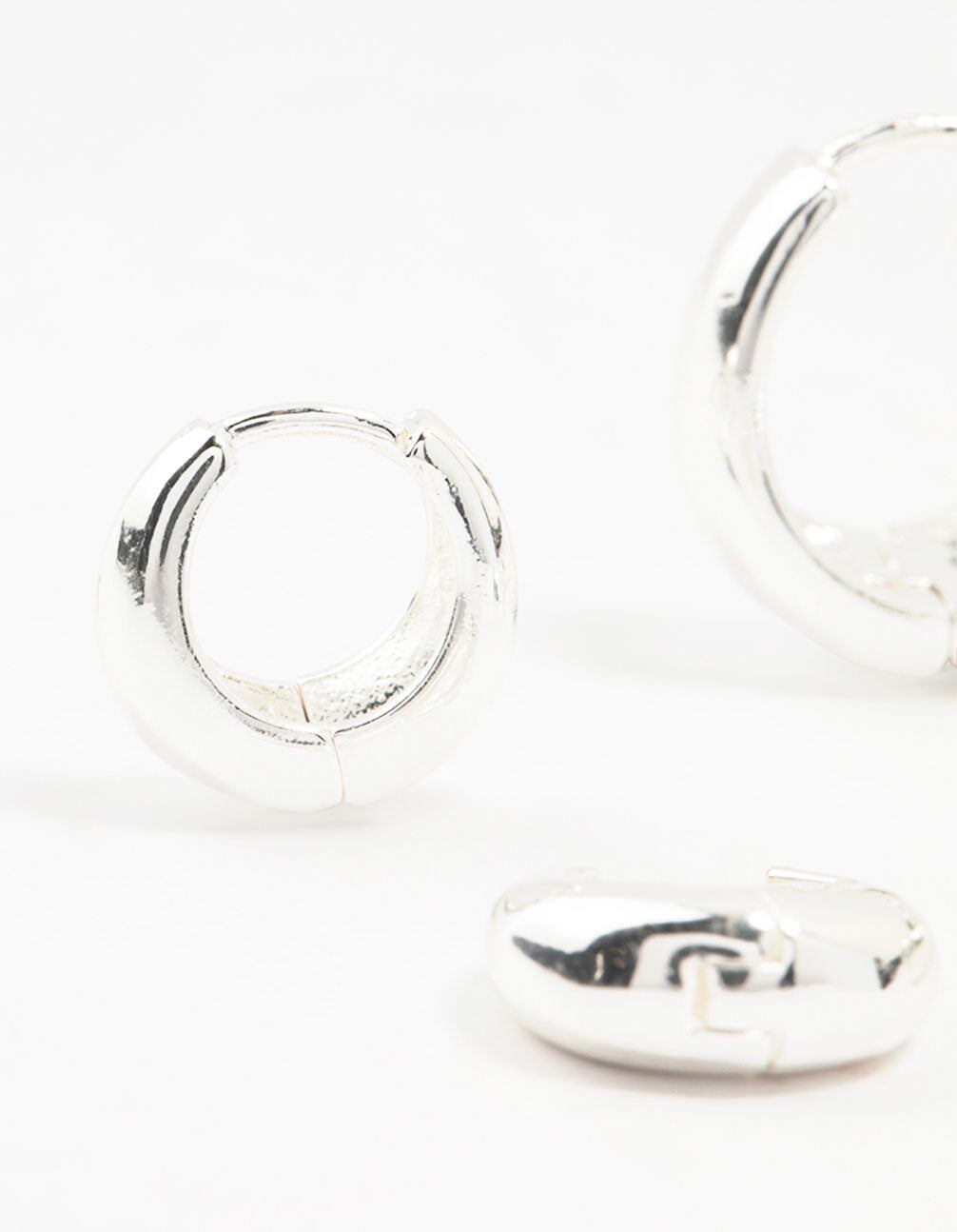 Embody effortless chic with Silver Plated Brass Chunky Mixed Hoop Earrings. This 3-pack of luxe silver hoops features eye-catching chunky designs and offers versatile mix-and-match options. Perfect for making a bold statement or adding a subtle accent.