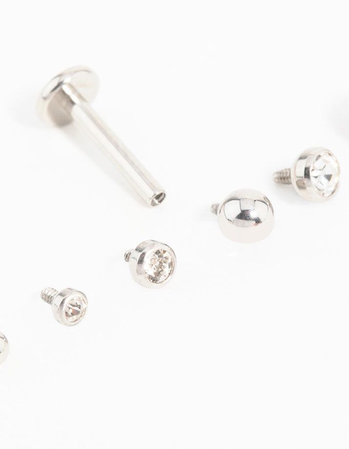 Ready to elevate your piercing game This Surgical Steel Cubic Zirconia Flat Back Pack is here to make it effortless! Designed for flat back studs. this pack includes five interchangeable heads for your flat back post. featuring sparkling cubic zirconia accents in varying sizes??”perfect for switching up your cartilage piercings with ease. Made from surgical steel. this set features a single flat back stud that you can customize for durable. stylish. and comfortable for all-day wear.