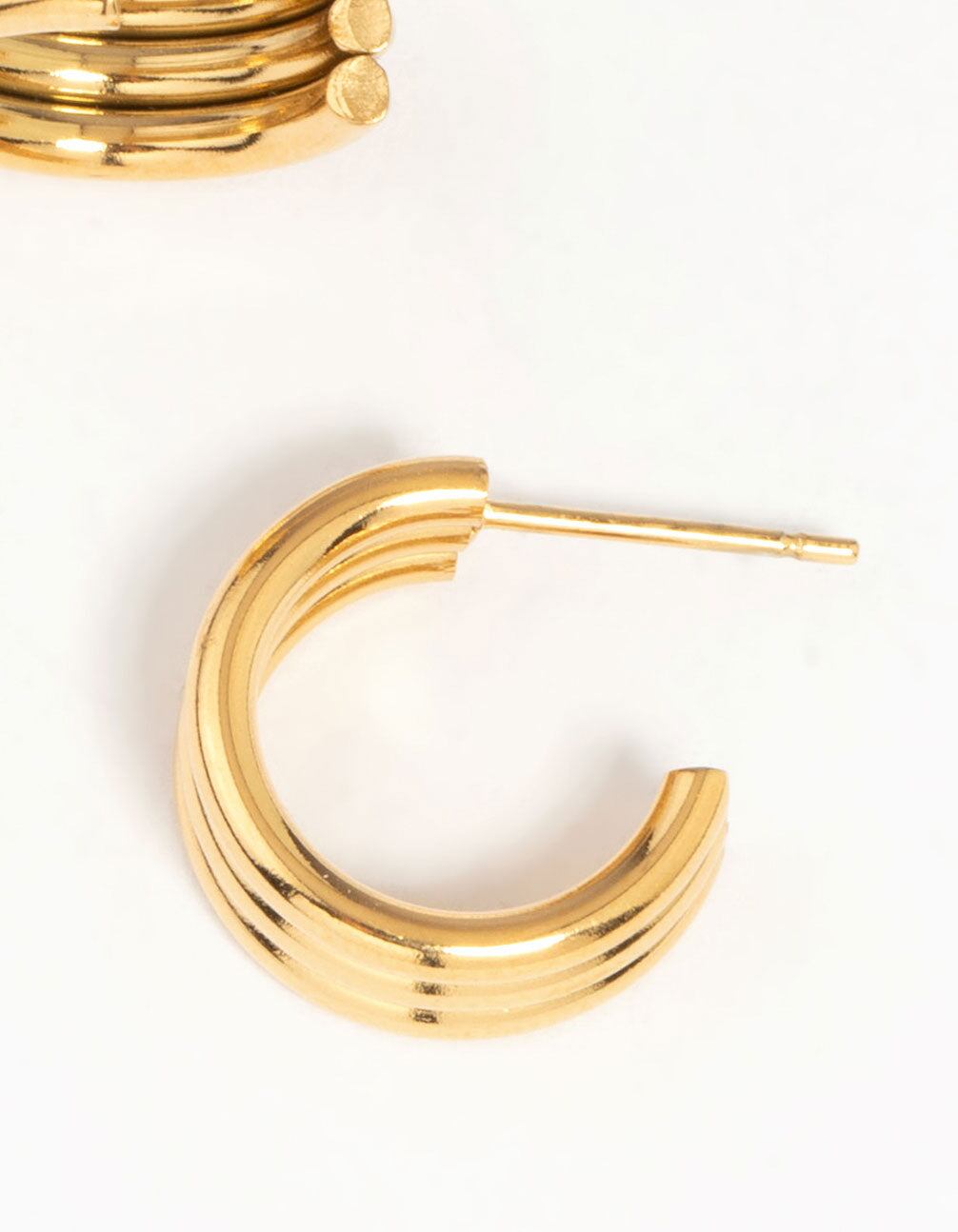 Waterproof Gold Plated Stainless Steel Fluted Hoop Earrings