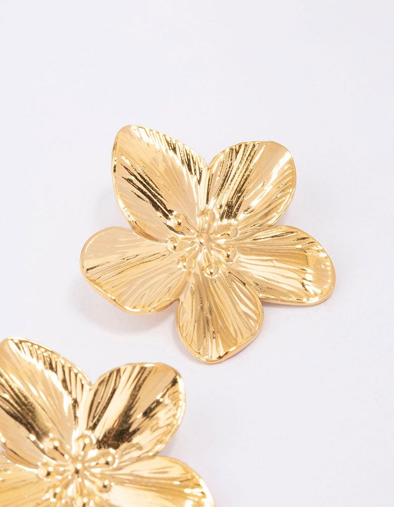 Waterproof Gold Plated Stainless Steel Textured Flower Stud Earrings