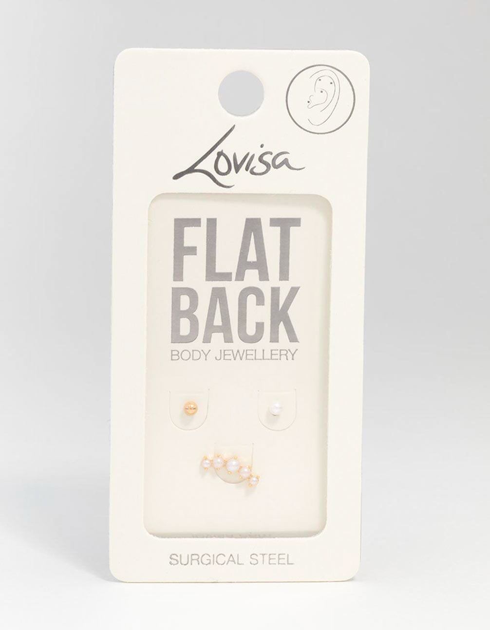 Gold Plated Surgical Steel Pearl Crawler Flat Back Earrings 3-Pack