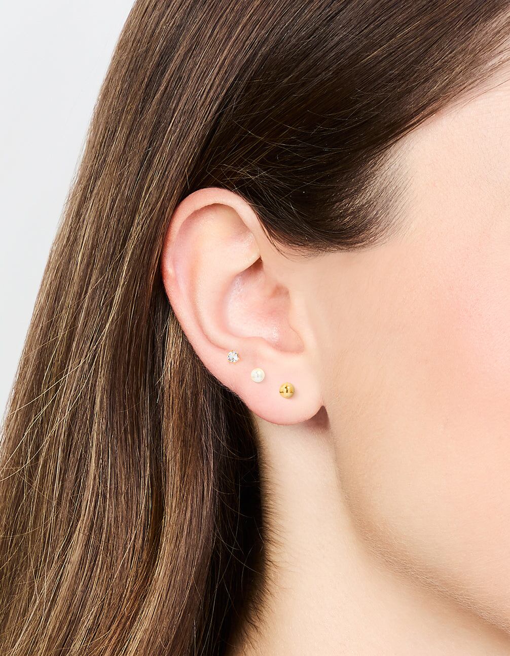 Gold Plated Surgical Steel Small Pearl & Cubic Zirconia Stud Earrings 3-Pack