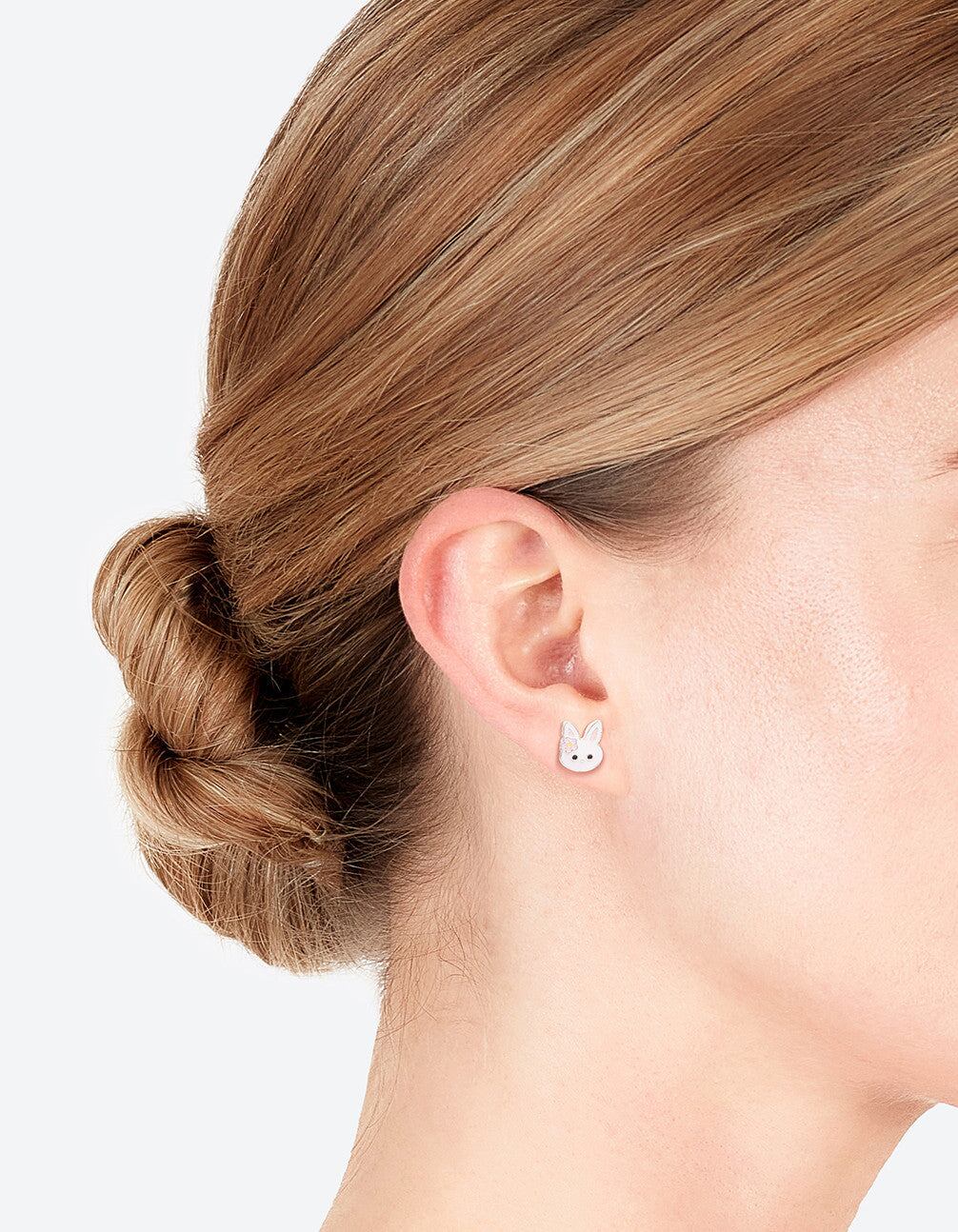 Decorate your ears with our silver toned cute bunny stud earrings.