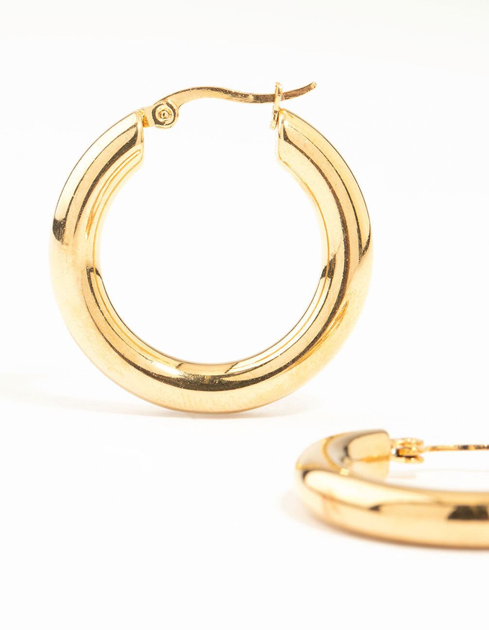 Waterproof Gold Plated Stainless Steel Large Plain Hoop Earrings