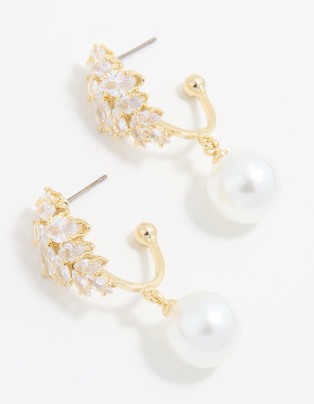 Gold Plated Cubic Zirconia & Pearl Hoop Earrings