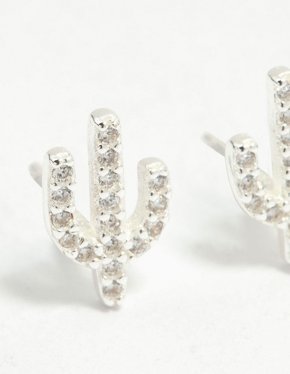 Sterling Silver Cubic Zirconia Pave Cactus Stud Earrings