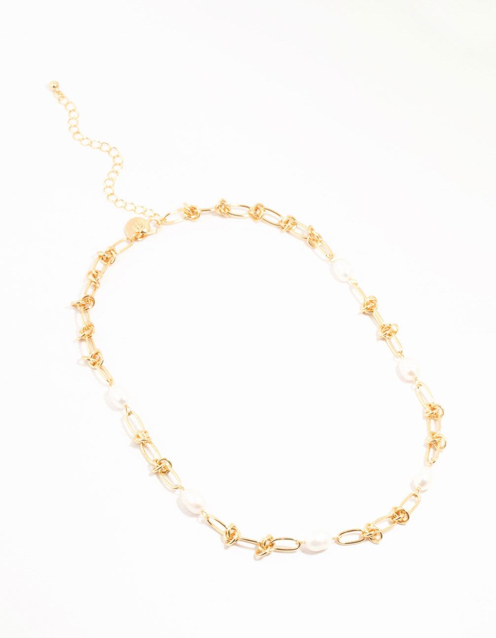 Elevate your everyday look with this stunning necklace. Crafted from gold plating and luscious freshwater pearls. it's the perfect blend of elegance and style. This necklace also features a link chain design for a modern finish.