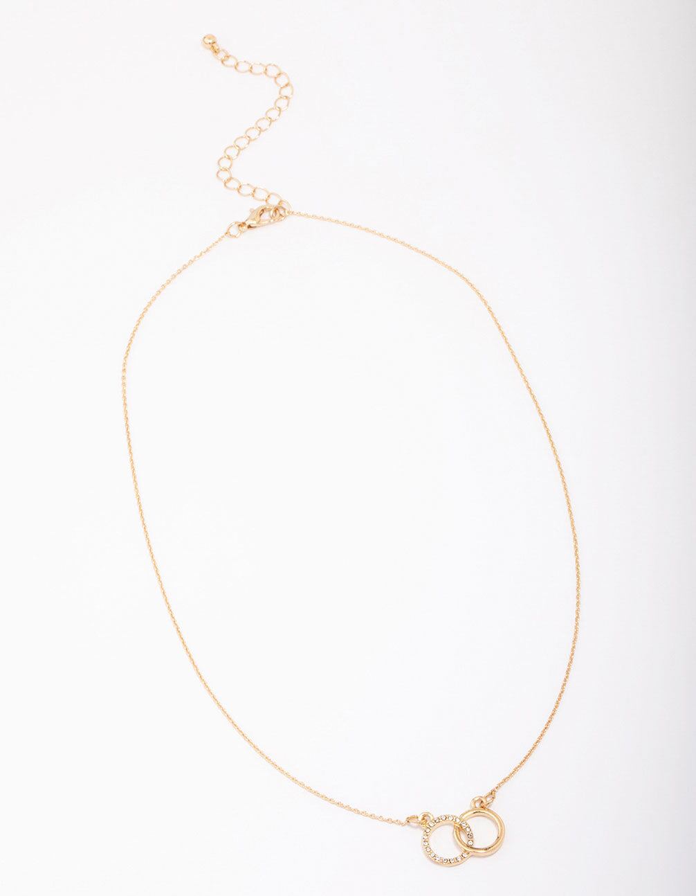 Gold Diamante Double Circle Link Necklace