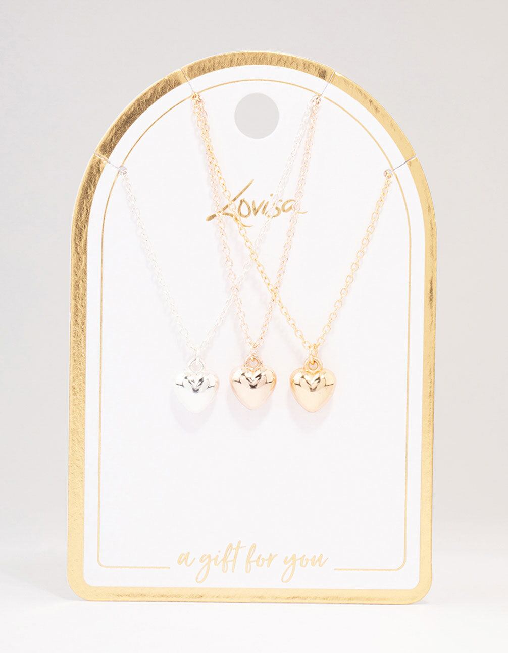 Mixed Metal Bubble Heart Necklace 3-Pack