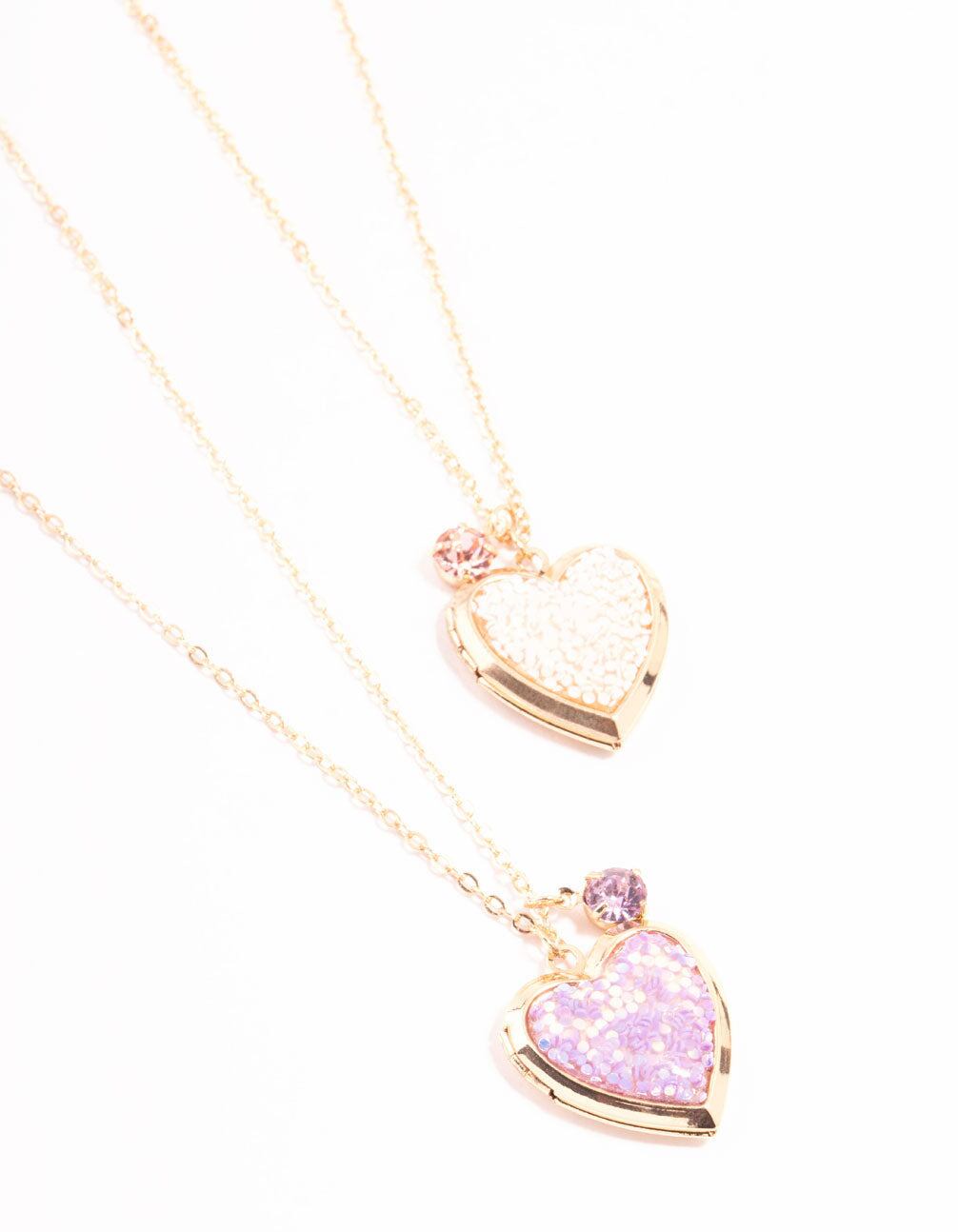 Gold Pink Sprinkle Heart Locket Necklaces 2-Pack