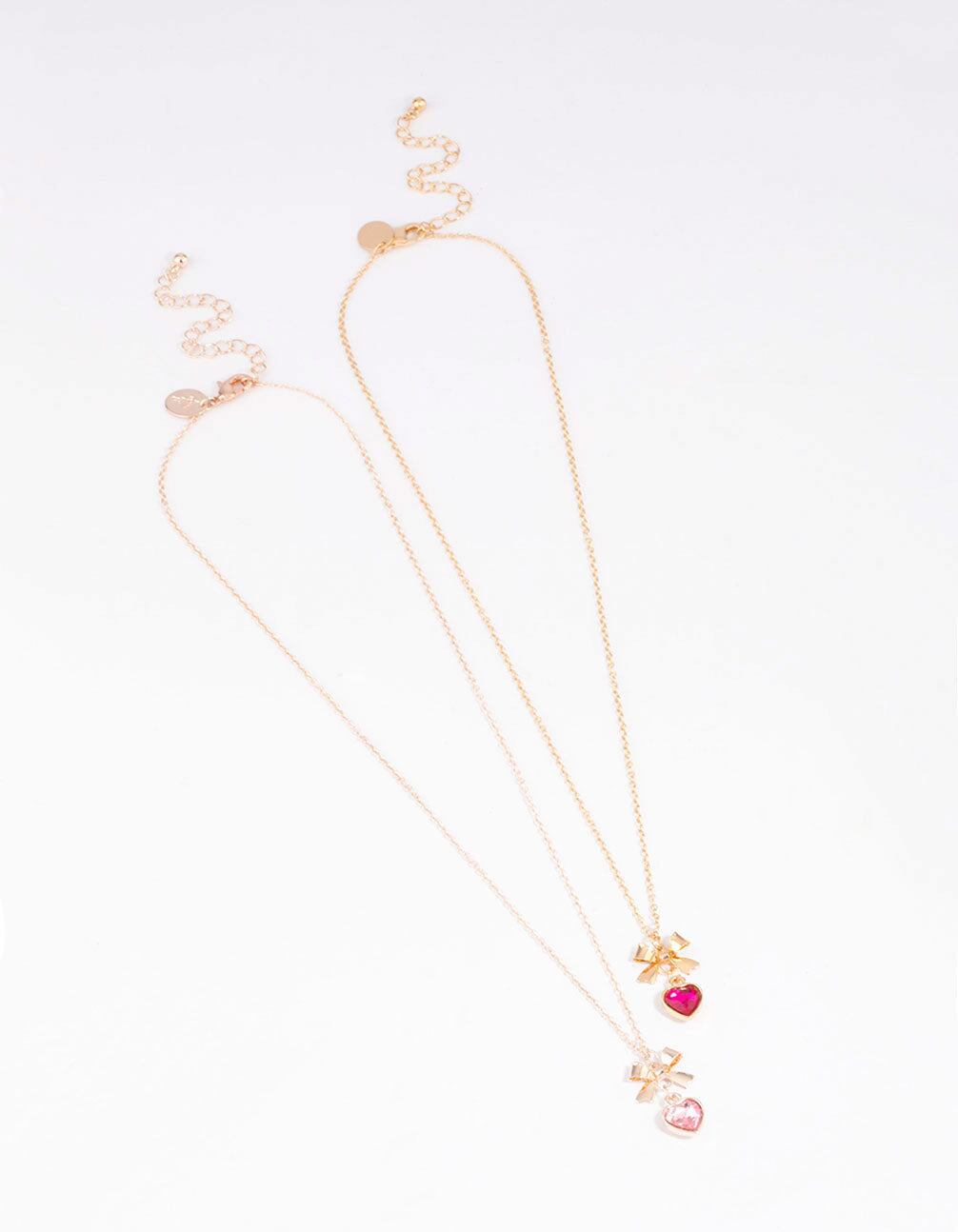 Mixed Metal Heart & Bow Necklace Pack