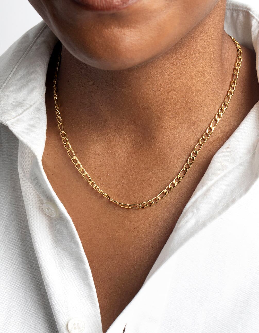 Waterproof Gold Plated Stainless Steel Figaro Necklace