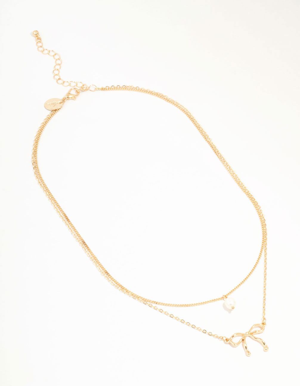 Gold Pearl & Bow Layered Necklace
