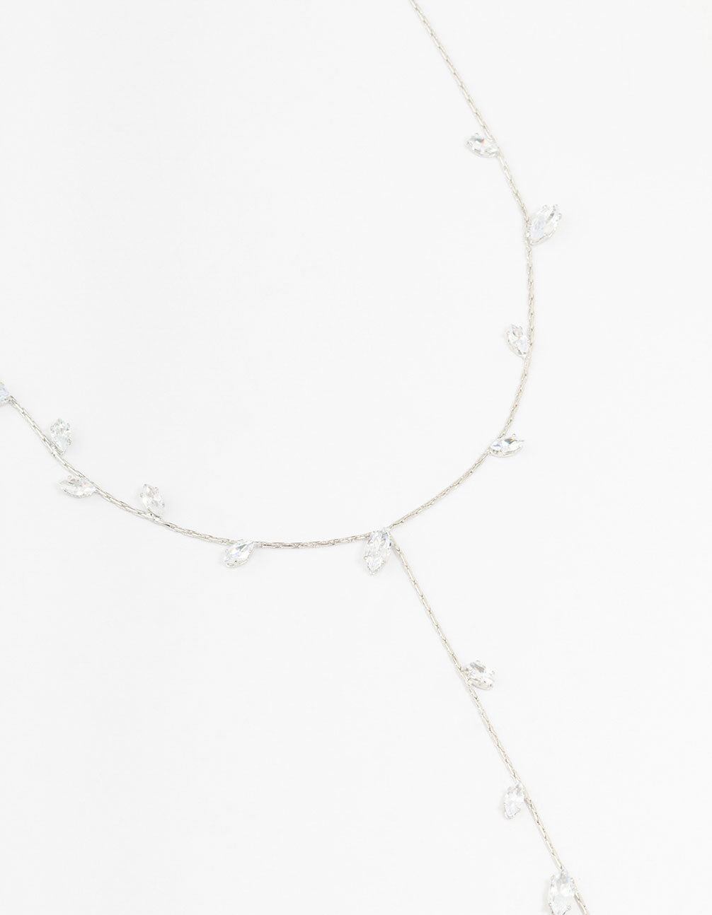 Silver Cubic Zirconia Vine Leaf Y-Necklace