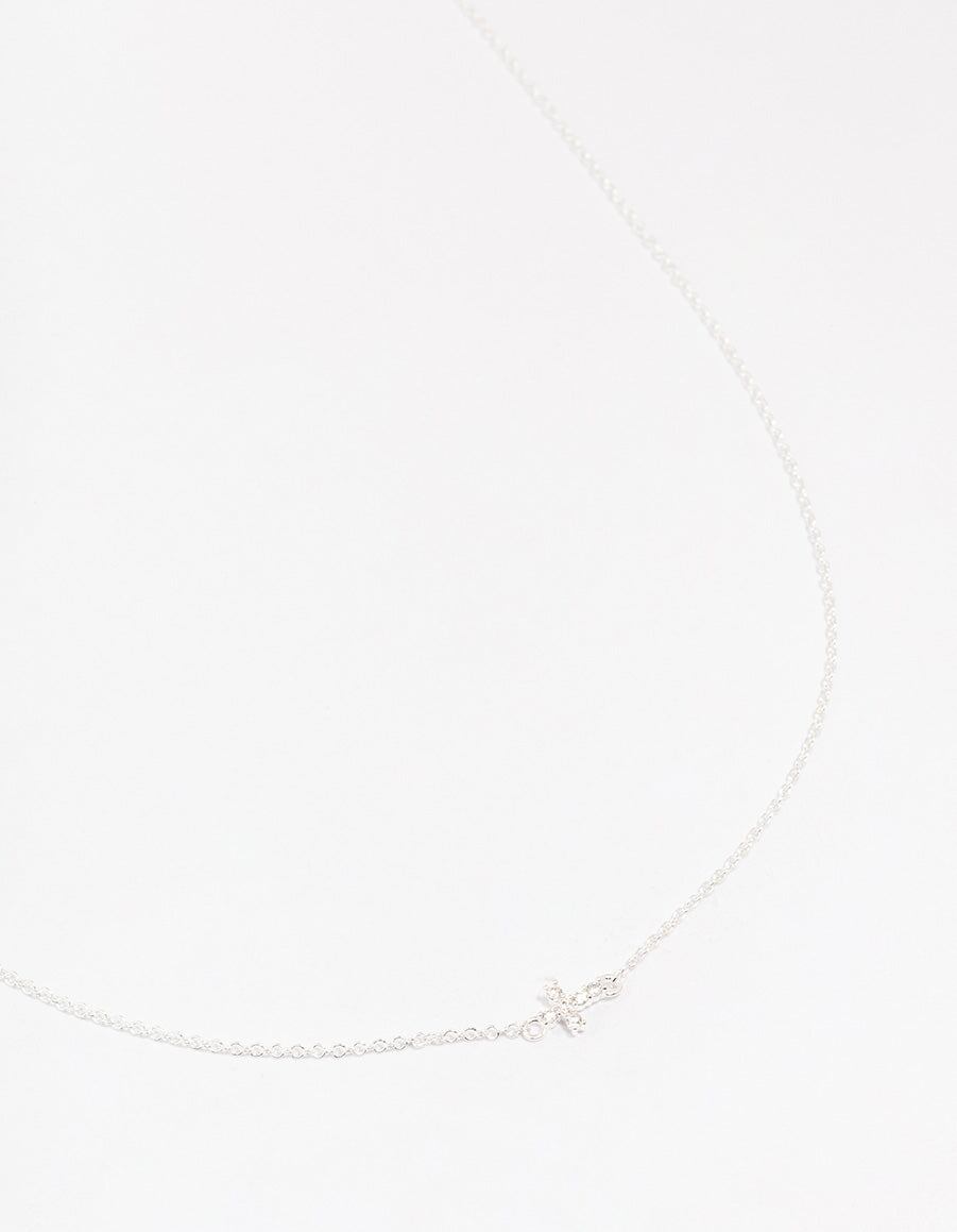 Sterling Silver Cubic Zirconia Mini Cross Pendant Necklace