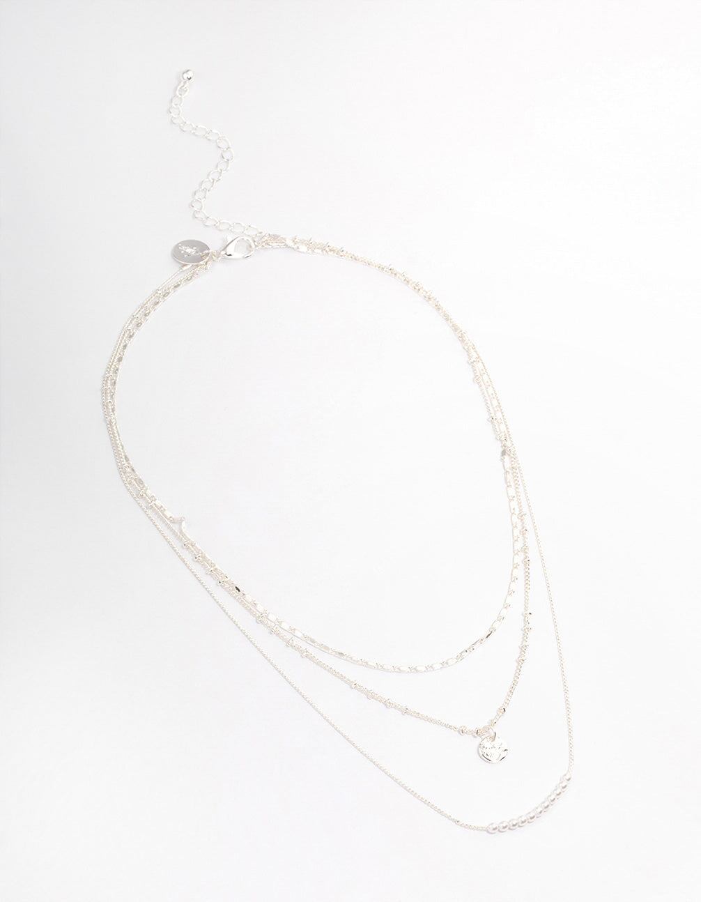 Silver Plated Fine Triple Layered Beaded Disc Necklace