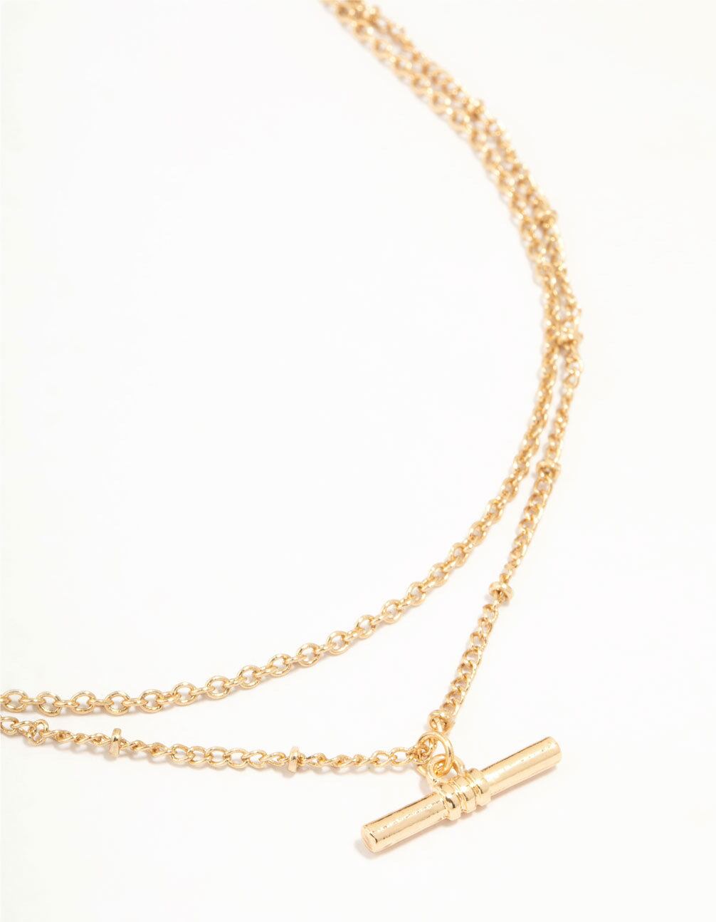 Upgrade your style with this stylish layered bar necklace in gleaming gold. Its adjustable length allows for versatile styling. and its trendy bar and chain layered design is perfect for adding a touch of refined elegance to any outfit.