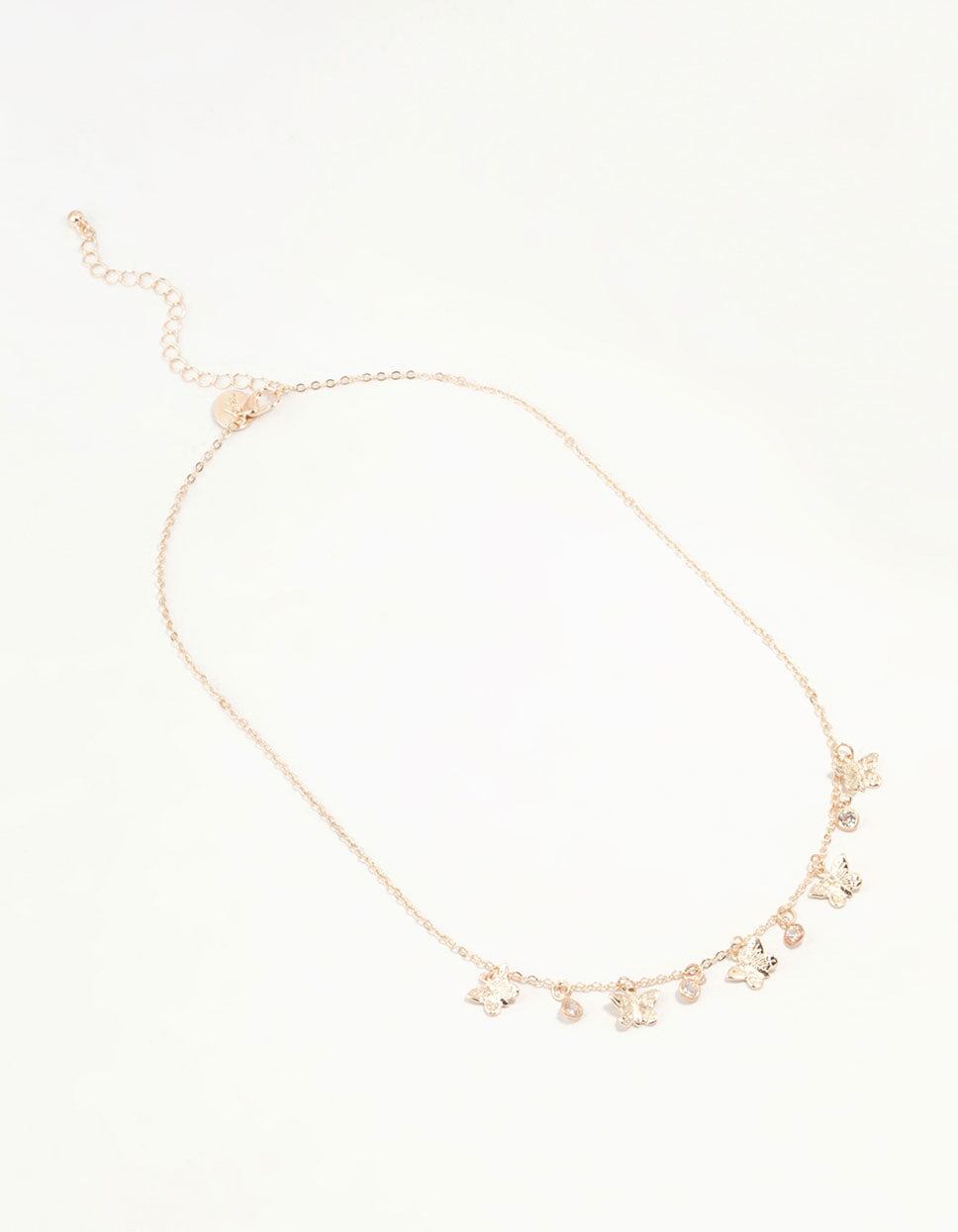 Gold Diamante Butterfly Drop Charm Necklace