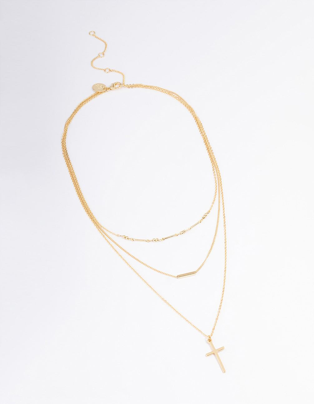 Style this Gold Plated Layered Bar & Cross Necklace with a set of simple studs for a timeless finish.