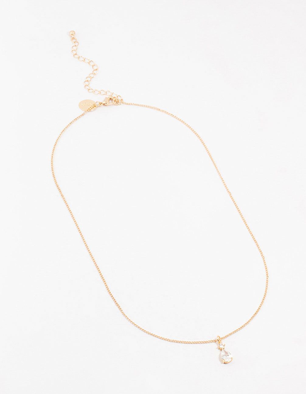 Gold Cubic Zirconia Pear Drop Pendant Necklace