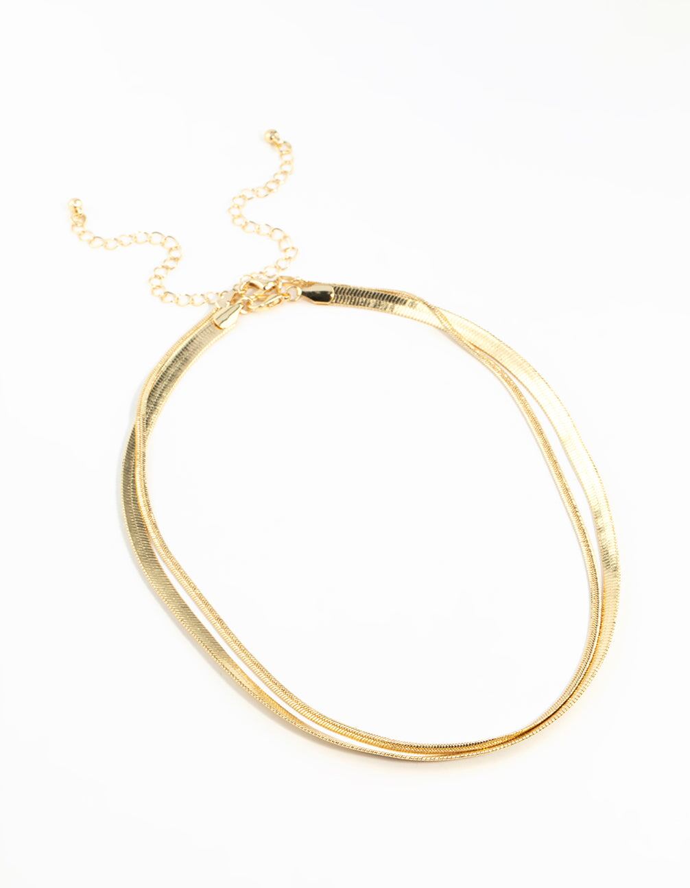 Gold Plated Herringbone Chain Necklaces 2-Pack