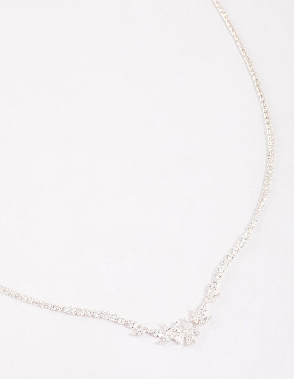 Silver Plated Cubic Zirconia Dainty Cup Chain Floral Necklace