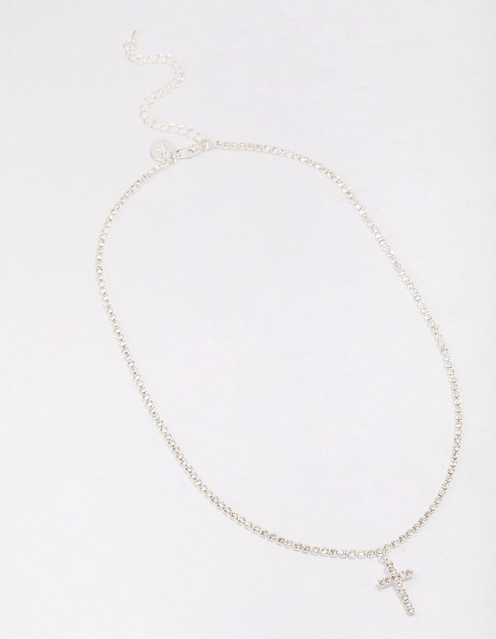 For a timeless finish to your outfit. style this silver pendant necklace. This chain features a diamante encrusted cross motif. perfect for adding a luxe finish to any look.