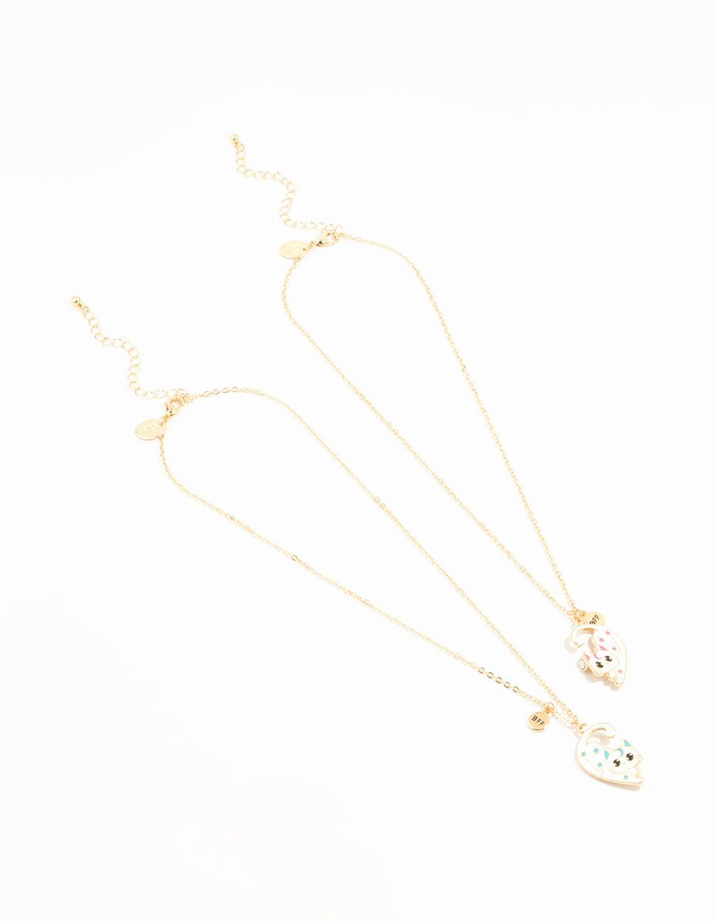 Kids Gold Moon Cat BFF Necklaces 2-Pack