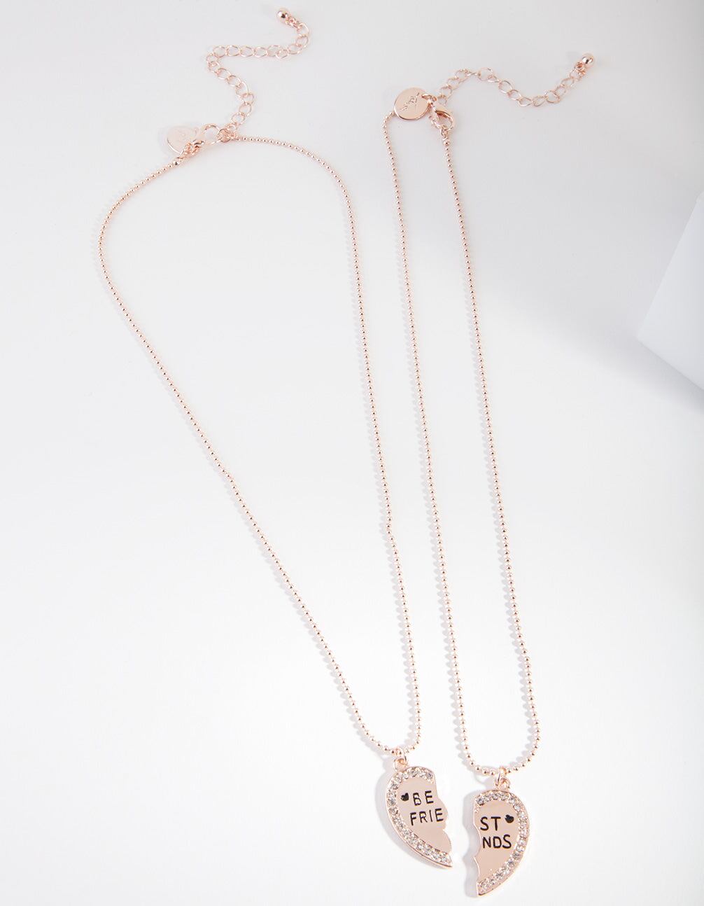 Kids Rose Gold Diamante Best Friend Heart Necklace Set