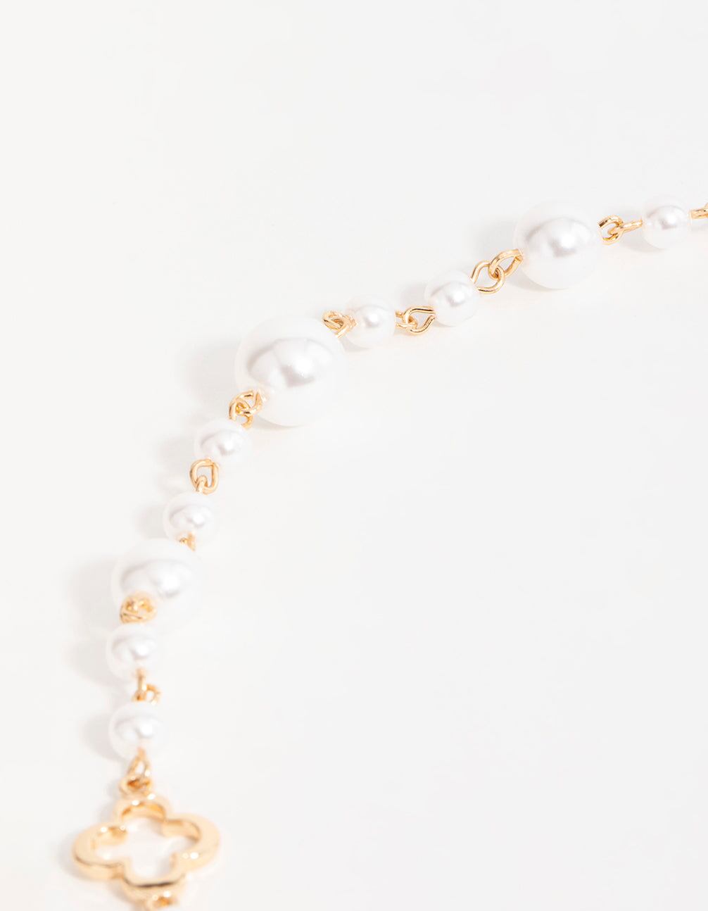 Gold Pearl Flower Long Necklace