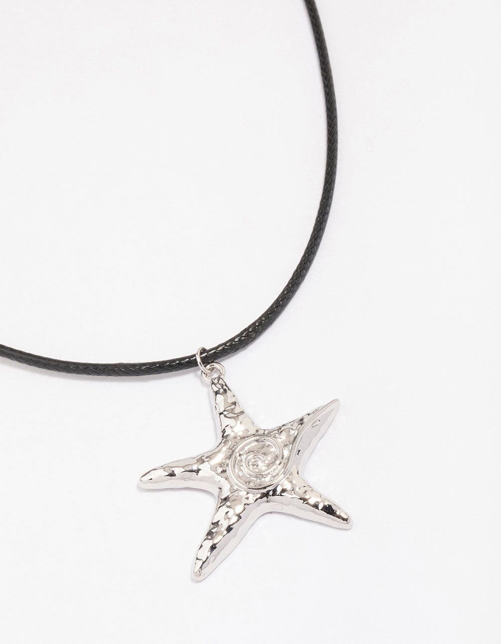 For an on-trend addition to your look. style this classic cord necklace. This necklace features a black choker. adorned with a trending molten textured starfish pendant.