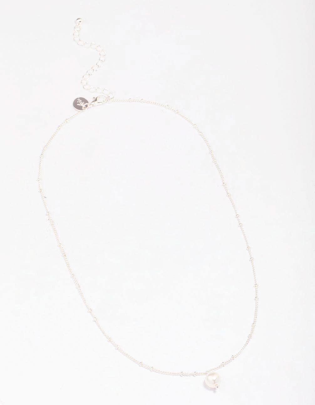 Complete your stack with this signature. silver-toned pendant. This classic chain necklace features a station chain. adorned with a simple round pearl for a refined finish.