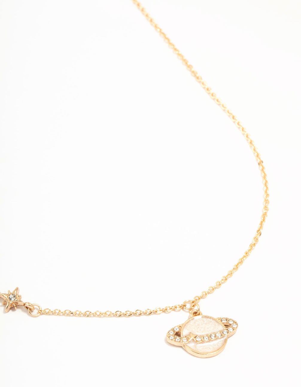 Embrace an out of this world look with this Gold Enamel Planet Drop Necklace. Featuring a chic. enamel planet pendant. this piece adds a touch of cosmic glamour to any outfit.