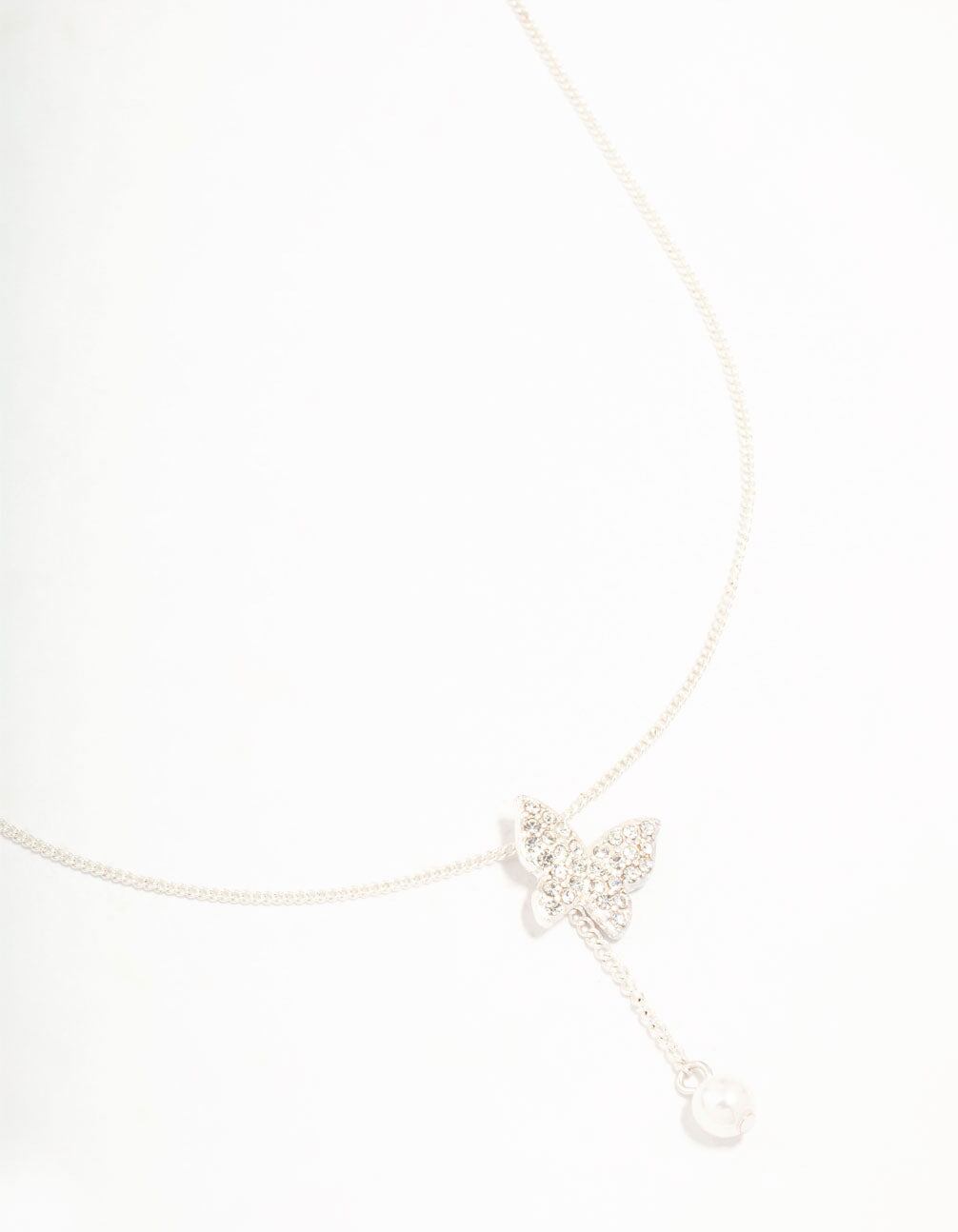 Silver Diamante Butterfly & Pearl Y-Necklace
