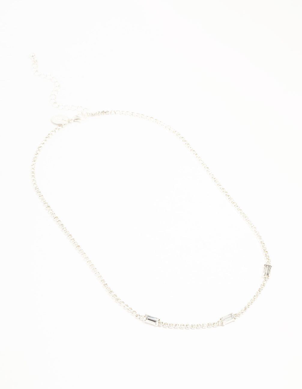 Silver Cupchain Baguette Cut Diamante Station Necklace