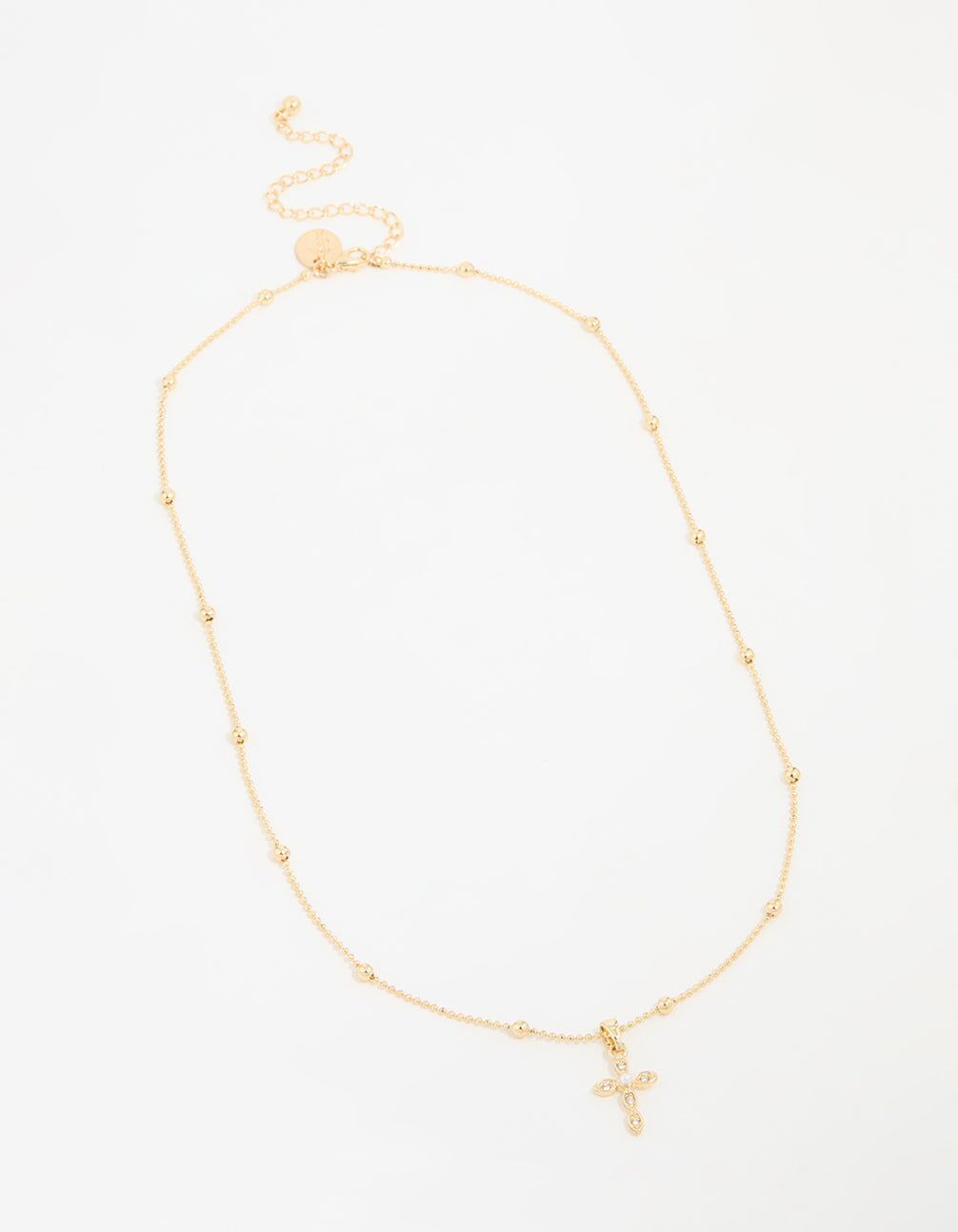 Upgrade your style with this Gold Plated Stone Cross Pendant Necklace! This stunning piece features a sparkling gemstone and is perfect for any occasion. Layer it or wear it solo for a chic look.