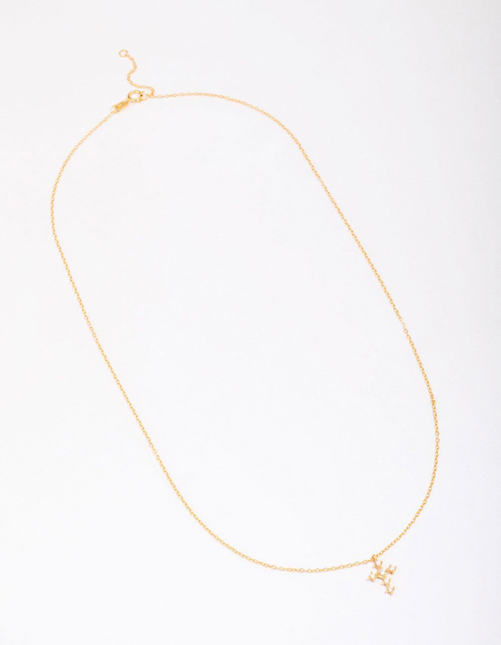Gold Plated Sterling Silver Cubic Zirconia Round Cross Chain Necklace