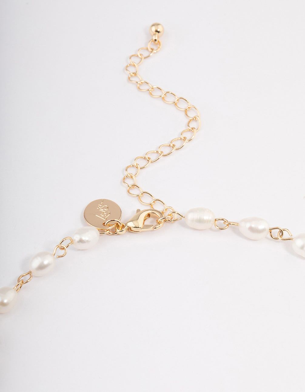 Gold Plated Freshwater Pearl Station Drop Necklace