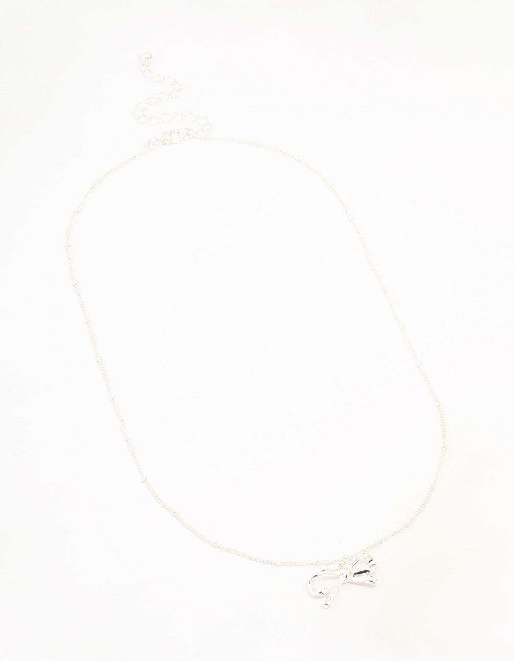 Silver Plated Bow & Ball Chain Necklace