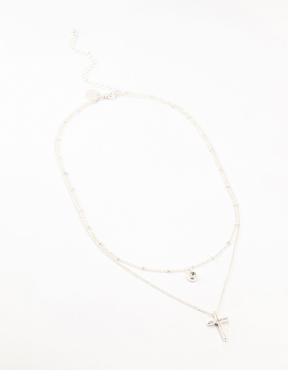 Shine bright with this Silver Diamante Cross Layered Necklace. the ultimate statement piece for any jewellery lover. Featuring delicate silver chains and a sparkling crystal cross pendant. this layered necklace is perfect for adding a touch of elegance to your everyday look. Whether you're dressing up for a night out or layering it over a casual tee. this versatile piece is a must-have. The diamante details catch the light beautifully. making it ideal for those who love a bit of sparkle. Pair it with other silver jewellery or let it stand out on its own ??“ either way. it's a stunning addition to your accessories collection.