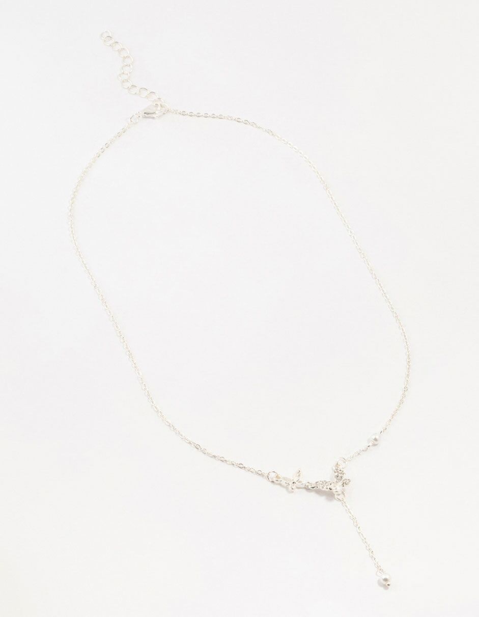 Silver Diamante Pearl Butterfly Y-Necklace