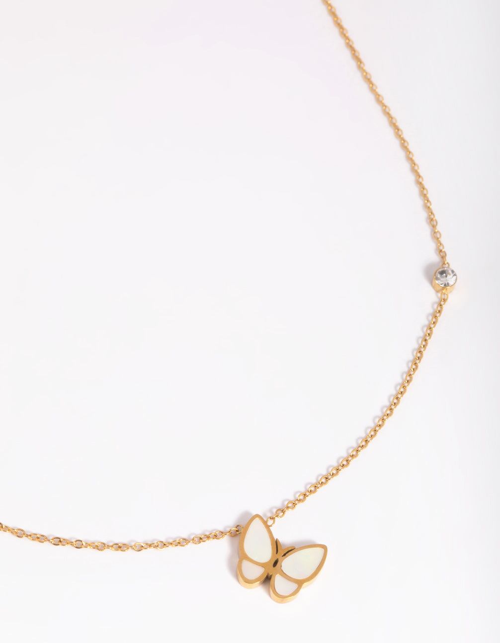 Waterproof Gold Plated Stainless Steel Butterfly Pendant Necklace