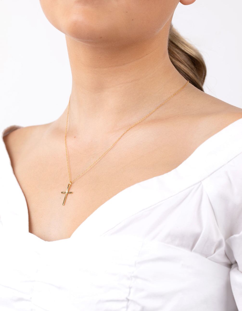 Every jewellery collection needs a simple pendant necklaces that can be worn every day. or layered with other pieces to create a more dramatic look. This lovely sterling silver necklace is plated with genuine gold. and features a dainty cross design.