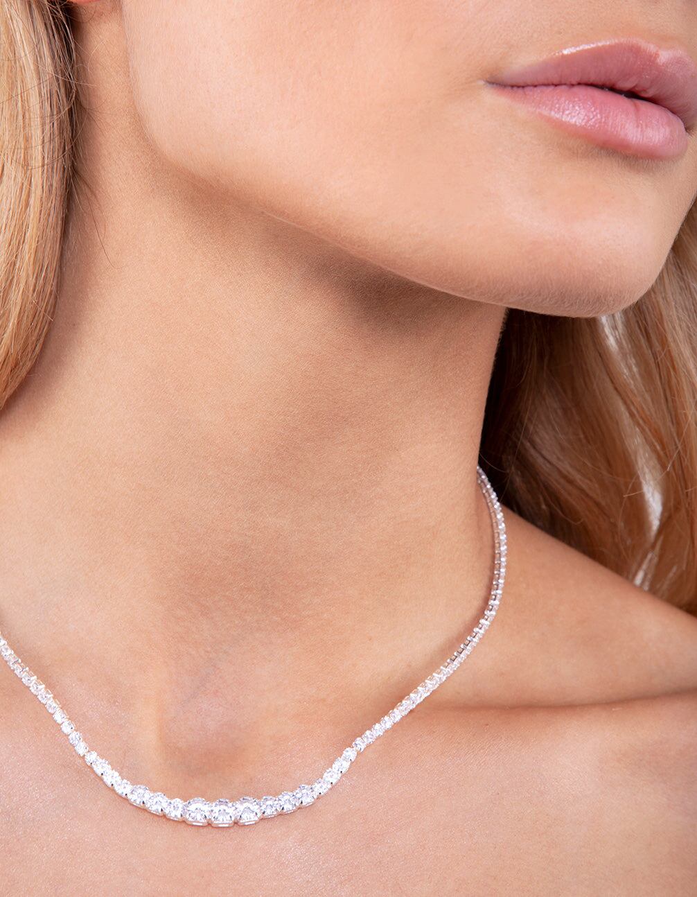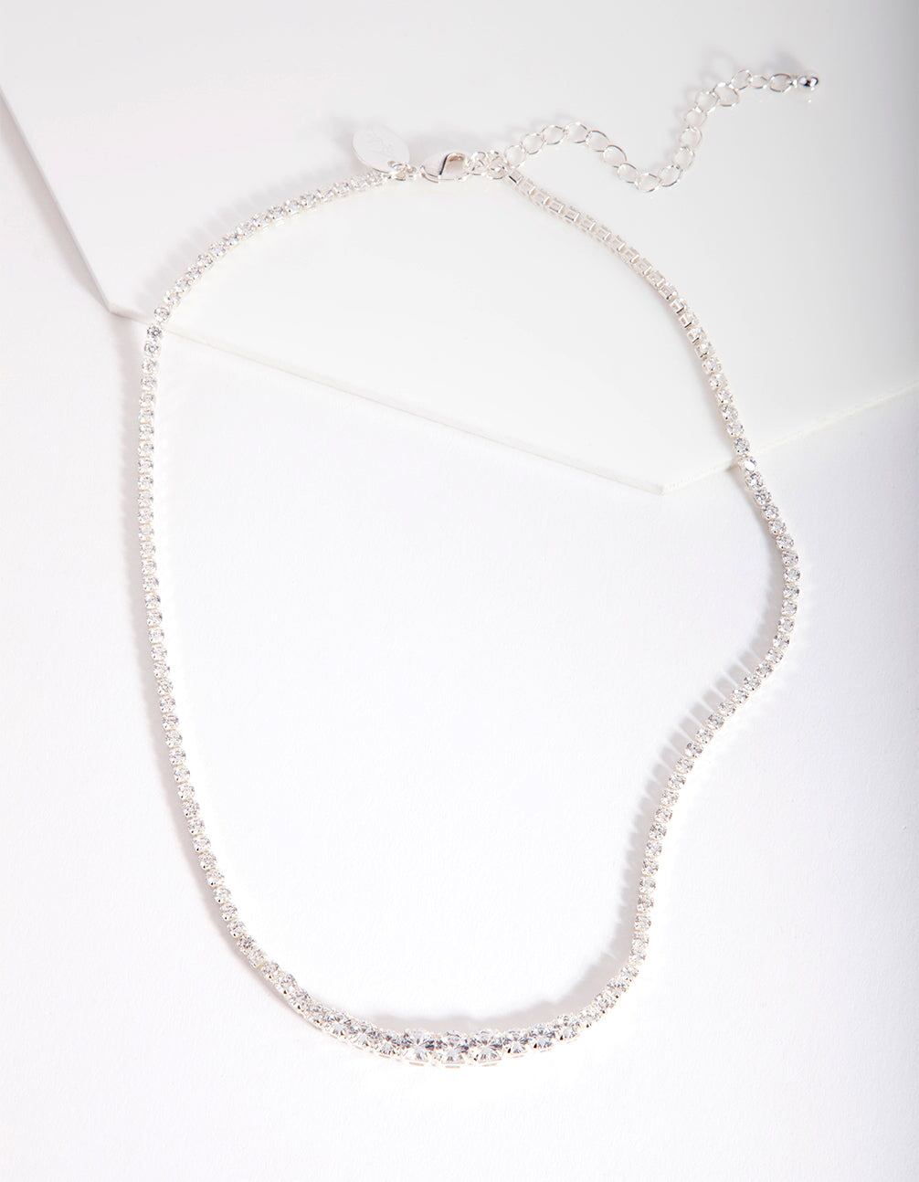 Silver Cubic Zirconia Graduating Diamante Tennis Necklace