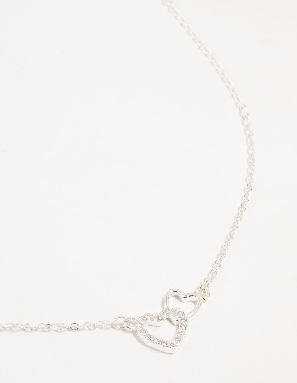 Silver Cubic Zirconia Open Double Heart Necklace