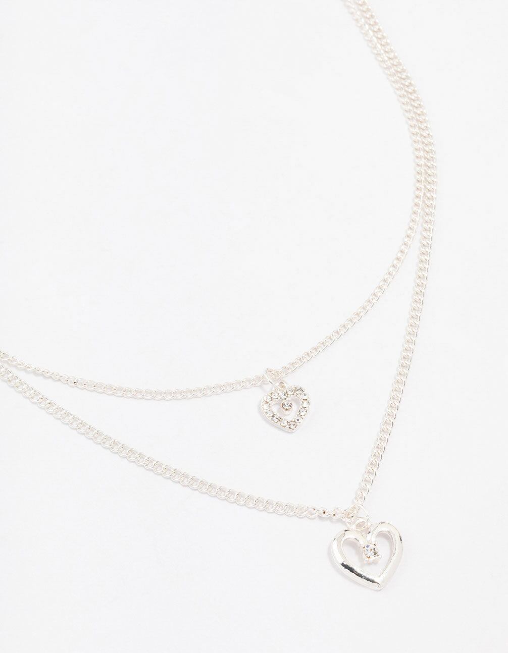 Silver Double Chain Heart Diamante Necklace