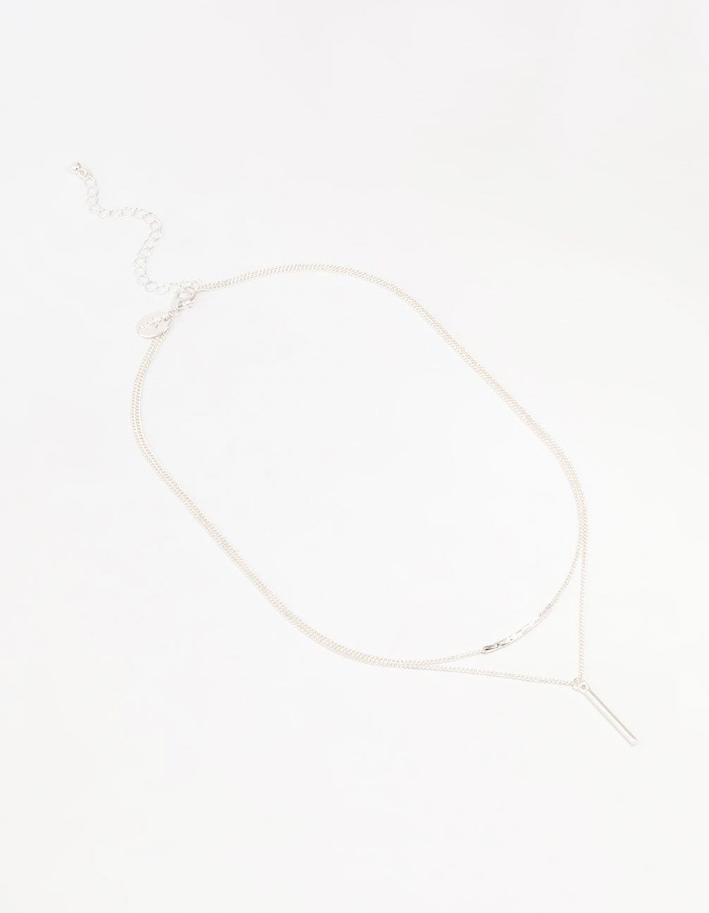 Silver Double Chain Bar Layered Necklace