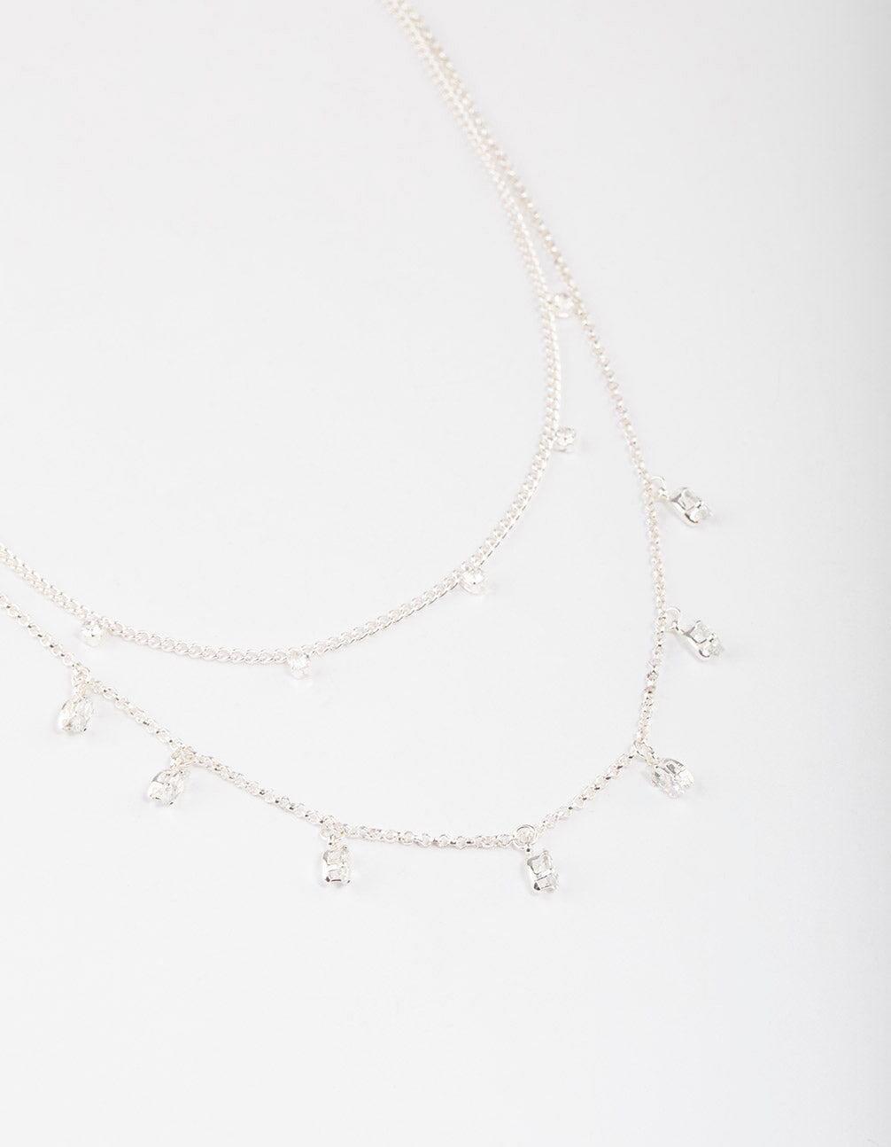 Silver Plated Dainty Cubic Zirconia Drop Layered Necklace